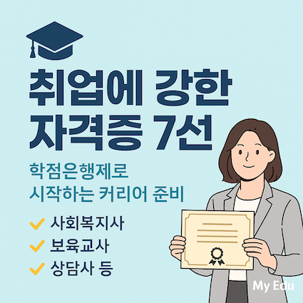 무엇보다 중요한 것은 어떤 자격증을 선택하느냐입니다. 이 글에서는 실제 취업 현장에서 활용도 높은 학점은행제 자격증 7가지를 소개해 드립니다. 학점은행제를 시작하려는 분들께 확실한 길잡이가 될 수 있을 것입니다. 지금 바로 나에게 맞는 자격증을 찾아보세요!