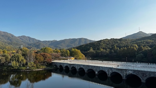 호수를 감싸는 평탄한 순환 산책로입니다. 물 위에 비치는 단풍과 나무 터널 풍경이 특징입니다. 벤치·정자·화장실이 일정 간격으로 배치되어 유아 휴식이 편합니다. 오후 3시 이전 방문 시 부드러운 자연광으로 사진 색감이 안정적입니다.